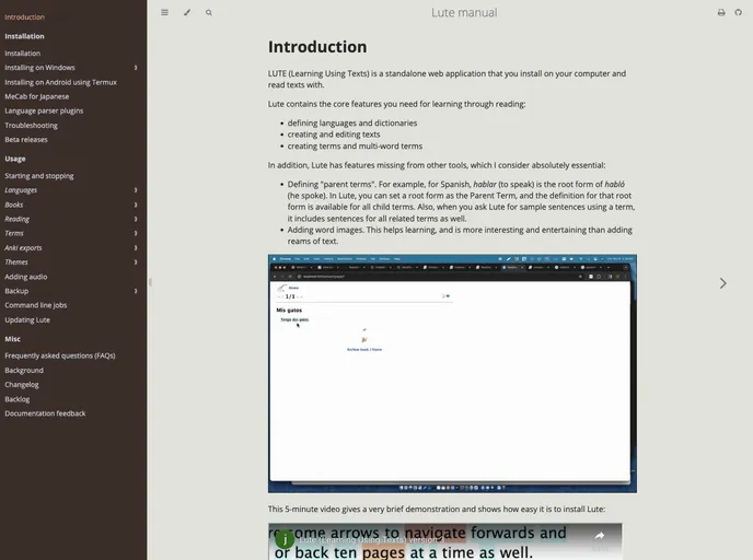 Interactive Learning: Lute v3 allows users to read texts in a target language while offering context-specific translations and explanations to aid understanding.