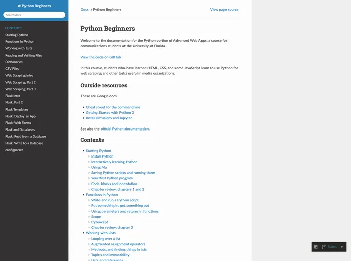 Python for Advanced Web Apps is a comprehensive resource designed for journalism students who wish to learn Python with a focus on web applications. Updated in spring 2023, this resource reflects significant changes in technologies like Selenium and the Flask extension Bootstrap-Flask. The curriculum emphasizes hands-on coding through real-world projects, ensuring that students not only learn the theory behind Python but also how to apply it through practical examples.