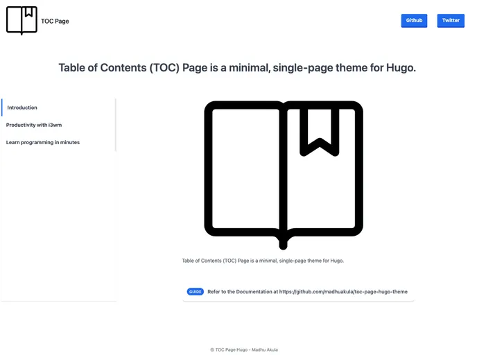 Table of Contents Page (toc-page) is a minimal, single-page theme for Hugo