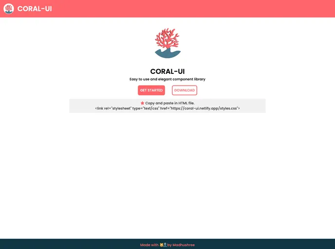 CORAL-UI is an easy to use and elegant component library. Version 1.0 consists of 9 beautifully designed components, with copy to clipboard HTML code-snippets.