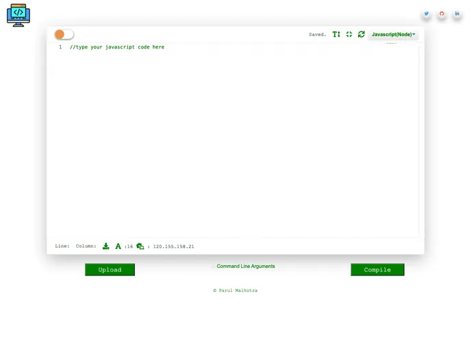 A code editor built in React with light/dark themes and support for multiple languages - Javascript, Python, Bash and Ruby. Autosaves code using localStorage.