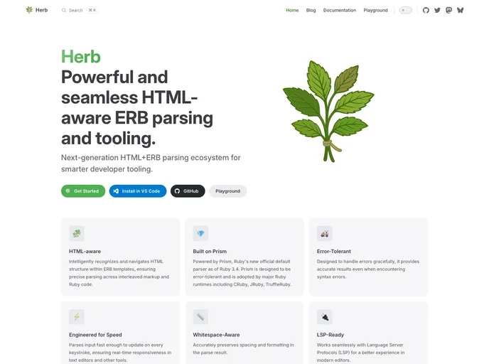 By leveraging advanced parsing capabilities, Herb not only addresses the lack of quality tooling in the realm of HTML+ERB but also equips developers with an extensive suite of tools that integrate seamlessly into various development environments. This toolkit reflects the need for modern, capable, and precise tooling in today's diverse landscape of web development.