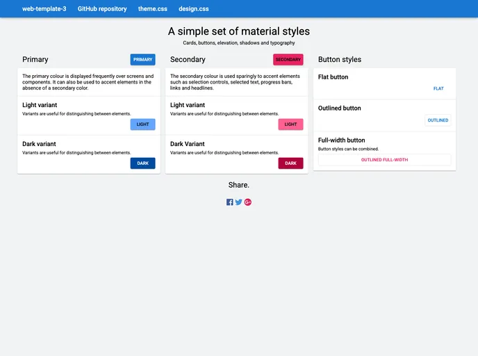A simple set of customisable material styles and components, including cards, buttons, elevation, shadows and typography