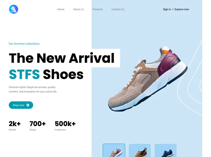 StepFuse, Shoe Brand Landing Page in React JS with Tailwind CSS