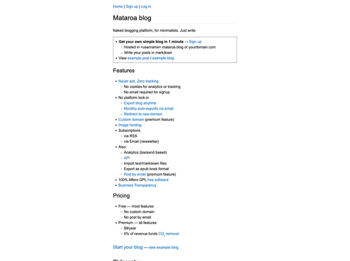Mataroa is an innovative naked blogging platform designed for seamless local development and easy deployment. Built on a robust Django codebase, it provides users with a straightforward way to create their own blogging environment, whether they are seasoned developers or newcomers looking to share their thoughts online. The platform's emphasis on subdomain management and containerization using Docker makes it a compelling choice for anyone interested in a flexible and scalable blogging experience.
