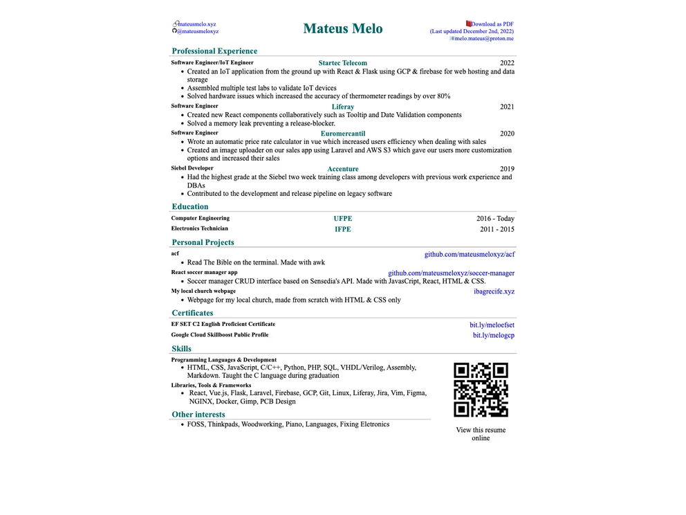 Resume template that I made myself, using only HTML + CSS