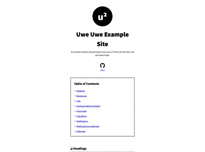 An example website showcasing the Uwe Uwe (u²) theme for the static site generator Hugo.