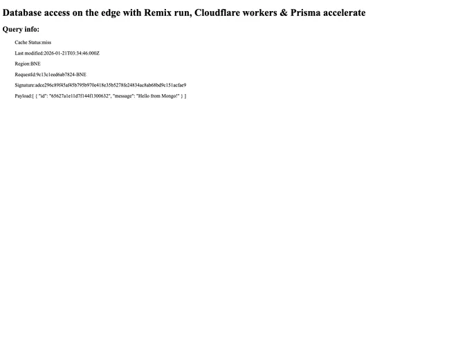 Remix app deployed as a Cloudflare Worker, uses Prisma Accelerate to connect a mongodb instance