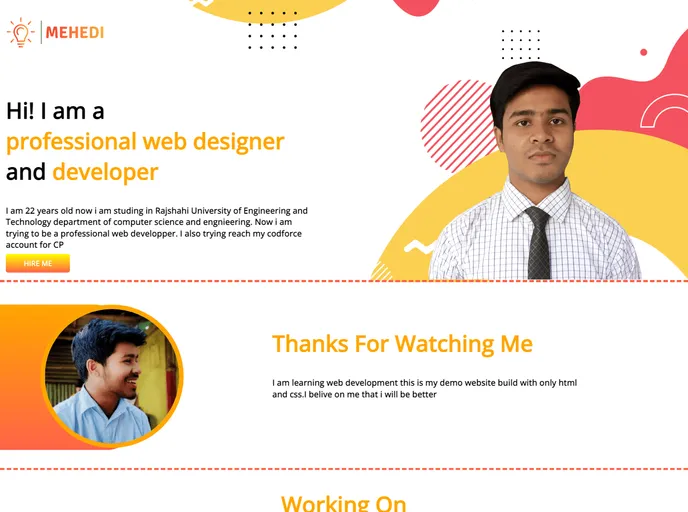 This is a simple portfolio website made entirely with HTML and CSS. This website was created just for the purpose of practice.