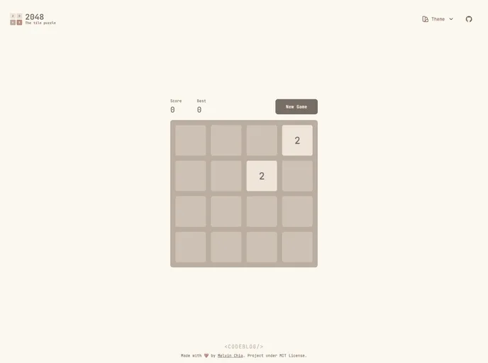 A 2048 game with fancy animations and cool looking switchable themes