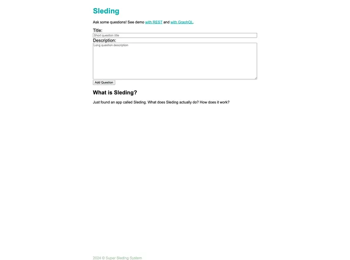Sleding is a social interaction platform that allows users to engage in various activities such as QA sessions, voting, and polls. Inspired by Slido, Sleding aims to provide a seamless and intuitive experience for users to actively participate and contribute to discussions and events.