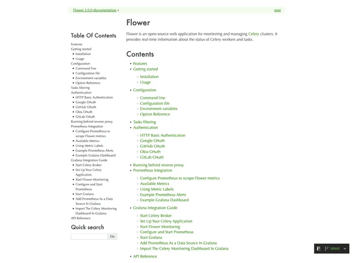 Authentication and Security: Flower supports basic authentication mechanisms to secure access to the monitoring interface, helping protect sensitive task data.