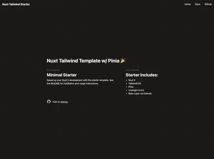 Minimal Nuxt 3 starter template with Tailwind, Pinia and Unplugin-Icons. Optional Base Layer via Nuxt config extends key.
