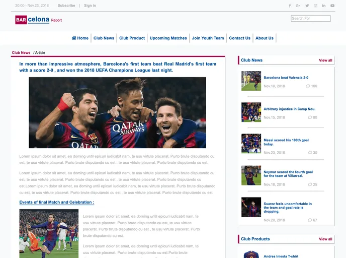 Barcelona Report is a HTML landing page website for introducing Barcelona club news.