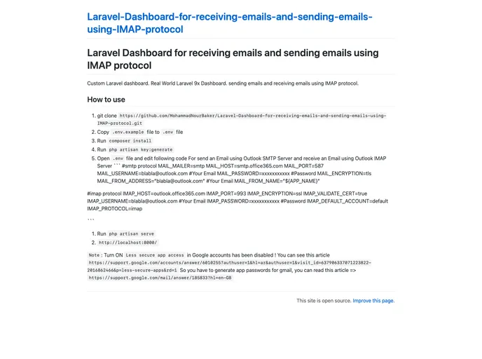 The Laravel Dashboard for receiving and sending emails using the IMAP protocol is a powerful tool for managing emails within a Laravel application. With features such as a custom dashboard, sending and receiving emails using the IMAP protocol, and integration with Outlook's servers, this dashboard provides a comprehensive solution for email management. The installation process is straightforward and includes the necessary steps for configuring email settings. Additionally, it provides guidance for enabling "Less secure app access" and generating app passwords for Gmail users.