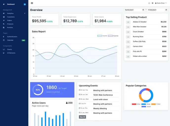 An admin dashboard template suitable for all kinds of applications.