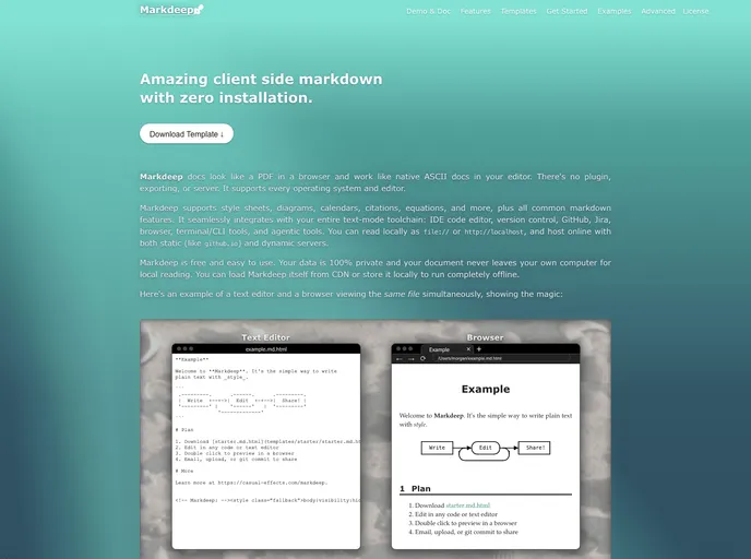 Markdeep stands out for its seamless integration of markdown-like syntax within a plain text environment, allowing users to focus on content creation while enjoying a variety of formatting options. Whether for personal notes, technical documentation, or collaborative projects, Markdeep offers an accessible solution for users looking for simplicity and efficiency.