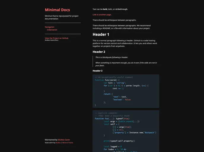Minimal theme repurposed for project documentation. Template documentation for all of my projects.