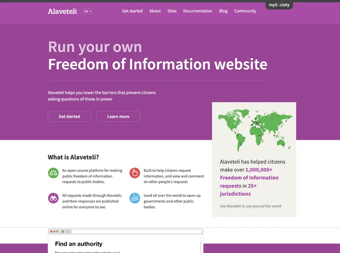 Alaveteli is an innovative open-source platform dedicated to enhancing the freedom of information process globally. Originating from the successful WhatDoTheyKnow project by mySociety in the UK, it aims to standardize and streamline FOI requests across various countries. By fostering collaboration among developers worldwide, Alaveteli aspires to create a software environment where transparency is a standard practice, promoting accountable governance.