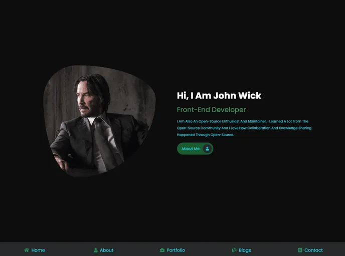 Multiple Pages: The portfolio includes key sections such as Home, About, Portfolio, Blogs, and Contact, providing a well-rounded presentation of the developer's work and background.