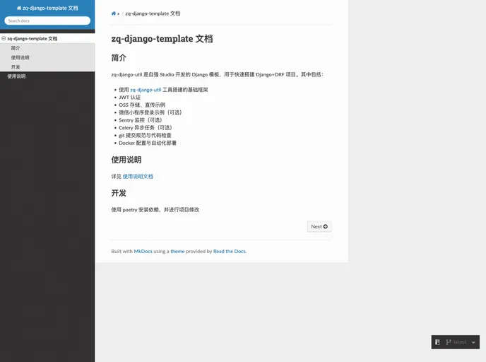 zq-django-template is a Django template developed by Self-improvement Studio. It is designed to quickly set up Django+DRF (Django Rest Framework) projects. The template includes various features such as a basic framework built using zq-django-util, JWT authentication, OSS storage with direct upload example, WeChat mini program login example (optional), Sentry monitoring (optional), Celery asynchronous tasks (optional), git commit rules and code checks, Docker configuration, and automated deployment instructions.
