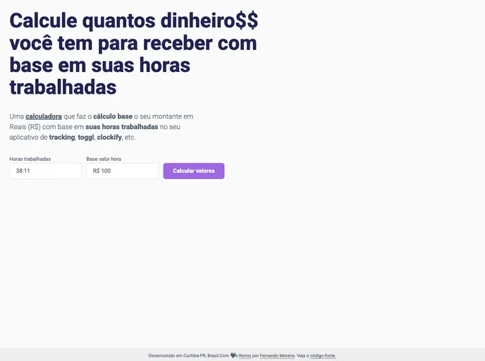 Calcule quantos dinheiro$$ você tem para receber com base em suas horas trabalhadas