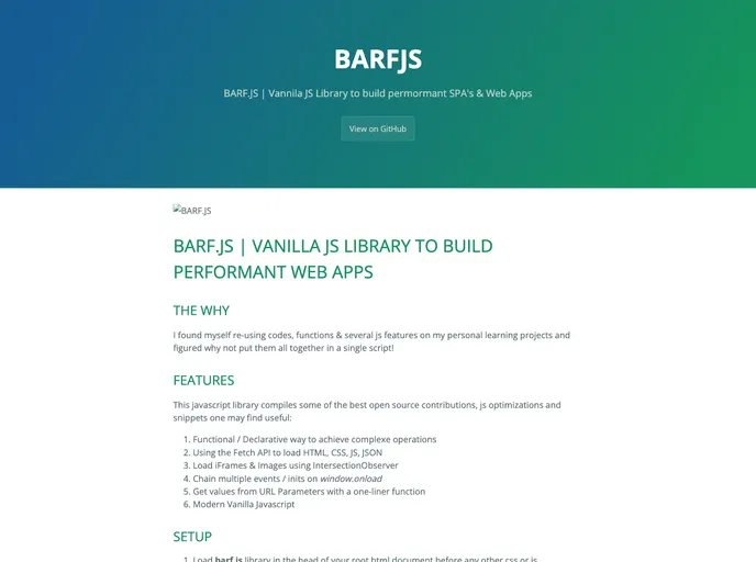 BARF.JS | Vannila JS Library to build permormant Web Apps