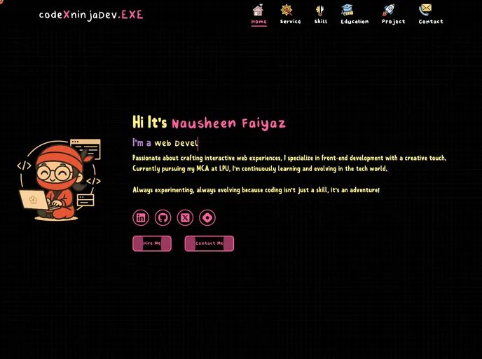 A beautifully crafted and fully responsive developer portfolio with an aesthetic, modern UI built using HTML, CSS, and JavaScript to showcase my projects, skills, and creative personality.