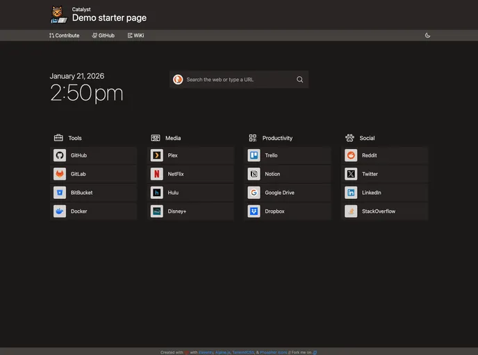Catalyst is a flexible and user-friendly starter page for your browser.