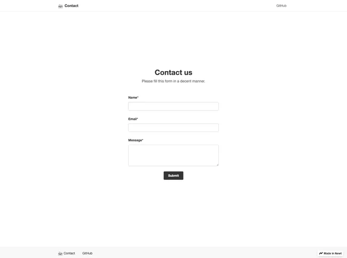This is a contact form built using Newt and Next.js. It allows users to create and deploy a contact form using the App Router. The form can be customized and the installation process is straightforward.