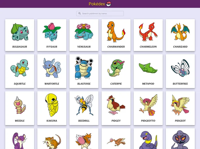 A pokedex website that allows users to search and view information about various Pokémon characters.