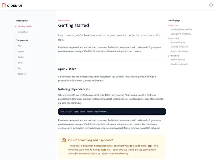 TailwindCSS Integration: The components in CIDER UI are built using TailwindCSS, making it easy for developers to customize the designs of the components to match their project's branding. With TailwindCSS's utility classes, developers can easily tweak the styles of the components without writing any CSS.