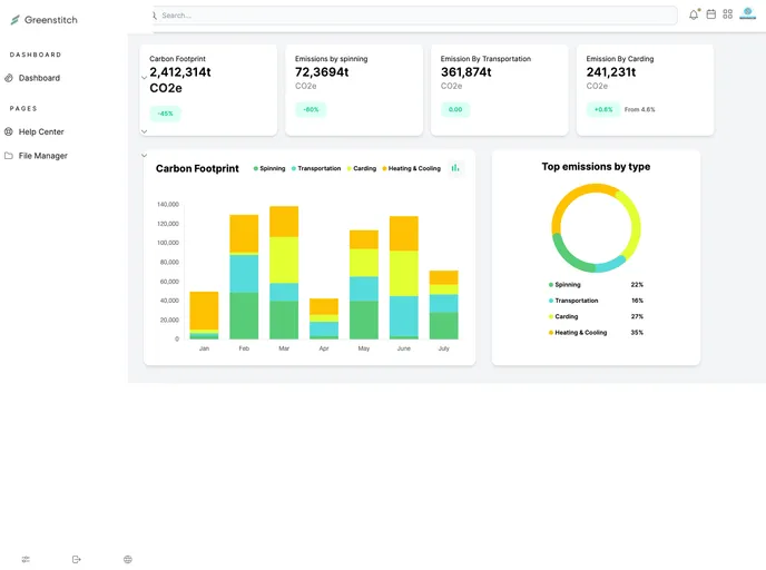 Greenstitch Dashboard is a Full Stack Website, built with Next.js 13, Tailwind CSS and Chart.js. The dashboard provides users with an intuitive interface to visualize their environmental impact data.