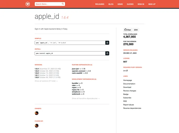 The AppleID gem offers a straightforward way to implement "Sign-in with Apple" in your applications, built on the OpenID Connect protocol. With a set of custom features tailored to enhance the user authentication process, this gem makes integrating Apple login into your app more seamless and user-friendly. It's designed not only for ease of use but also for efficient development and maintenance, ensuring that developers can focus on building great experiences without getting bogged down by the complexities of authentication.