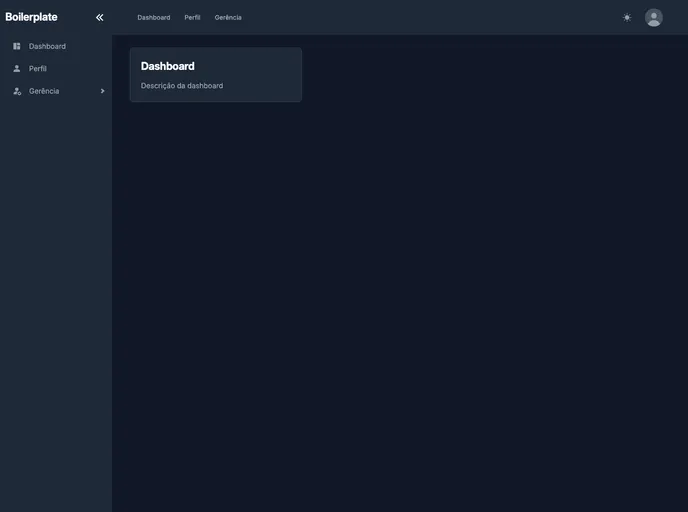 Boilerplate open source para React com Vite, configurado com ESLint, Prettier, Vitest, Husky, Tailwind CSS, dark mode e interface responsiva com sidebar e navbar.