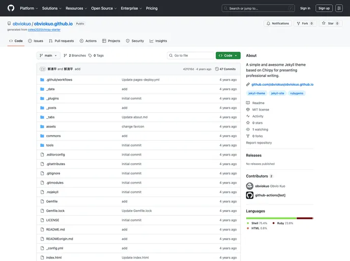 A simple and awesome Jekyll theme based on Chirpy for presenting professional writing.