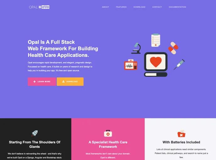 Opal is a revolutionary full stack web framework designed to streamline the development of digital tools for the healthcare sector. Built upon robust and established technologies like Django, AngularJS, and Bootstrap, Opal offers a reliable architecture that simplifies the creation of maintainable applications. What sets Opal apart is its focus on healthcare IT, aiming to improve accessibility and efficiency while engaging the developer community in its evolution.