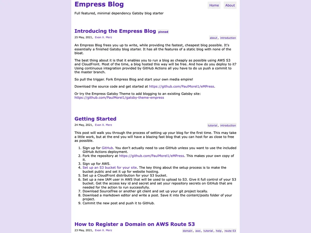 Empress is a full featured Gatsby blog starter that allows you to focus on your blog, rather than your code.