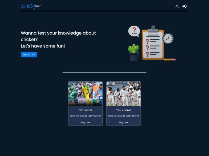 one8-Quiz is a quiz web app where users can play quizzes based on category. It has features like a timer for questions, a result page, an individual scoreboard, user profile page..