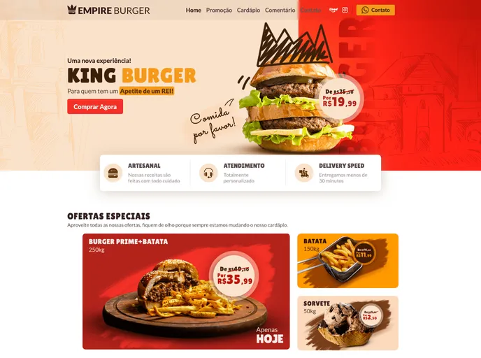 Uma landing page de uma hamburgueria fictícia feita para um desafio do BRChallenges.