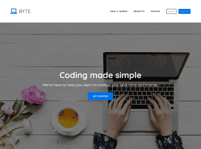 Landing page about fake company called Byte