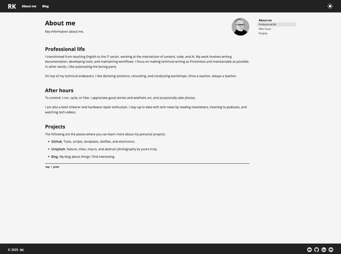 A simple Hugo theme suitable for a portfolio, documentation library, or blog.