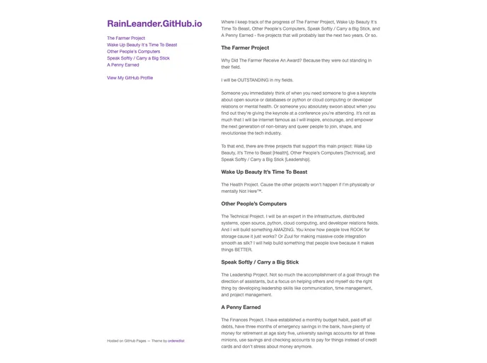 Where I keep track of the progress of five expansion projects that will probably last the next two years. Or so. And my CV.