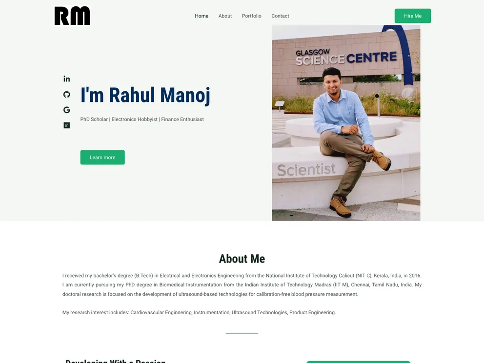 This is my portfolio website developed using static site generator, Jekyll. It is highly Search Engine Optimised(SEO). To test this you can search "rahulmanojcet" in google. It will even show my photo out of the box.