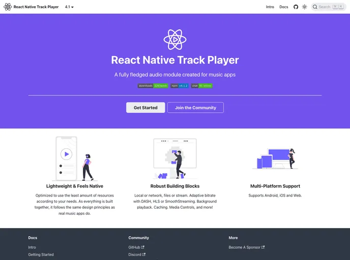 A fully fledged audio module created for music apps. Provides audio playback, external media controls, background mode and more!