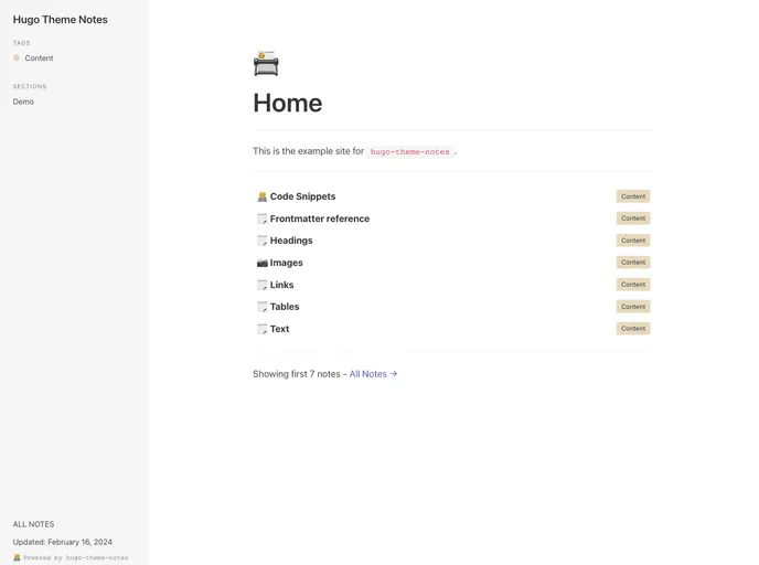 The Hugo theme "hugo-theme-notes" is designed to be used for storing and managing notes. It is heavily inspired by the "gatsby-theme-code-notes" repository on GitHub. This theme provides a user-friendly interface for organizing and accessing notes efficiently.