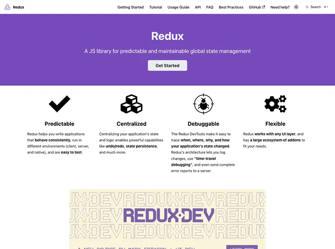 Redux is a state management library for JavaScript apps that provides a predictable and centralized way to manage application state. It enables developers to write actions and reducers that update the state in response to user interactions, server responses, and other events, and can be used with a variety of front-end frameworks and back-end technologies.