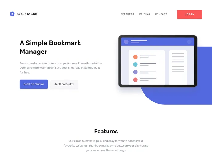 Landing page for a bookmark master app
