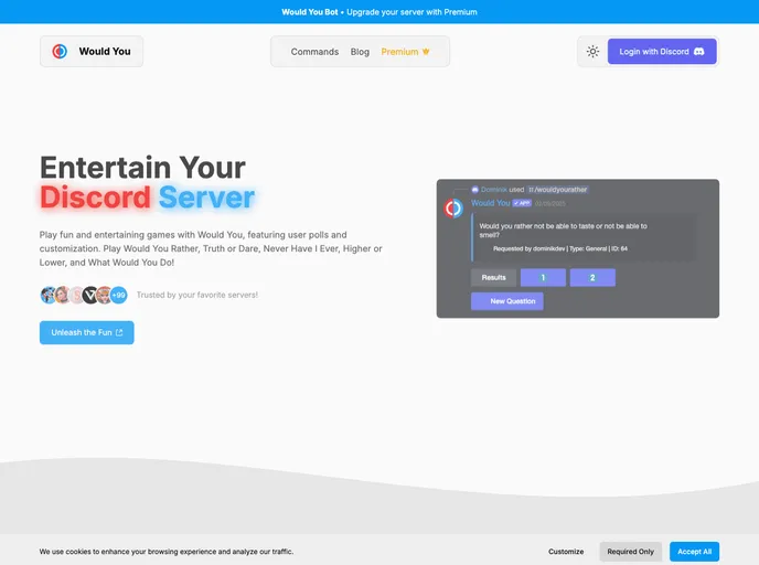 The official website for the Would You Discord bot. Using Next14 and TailwindCSS